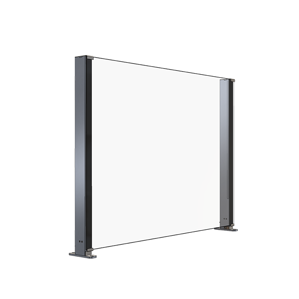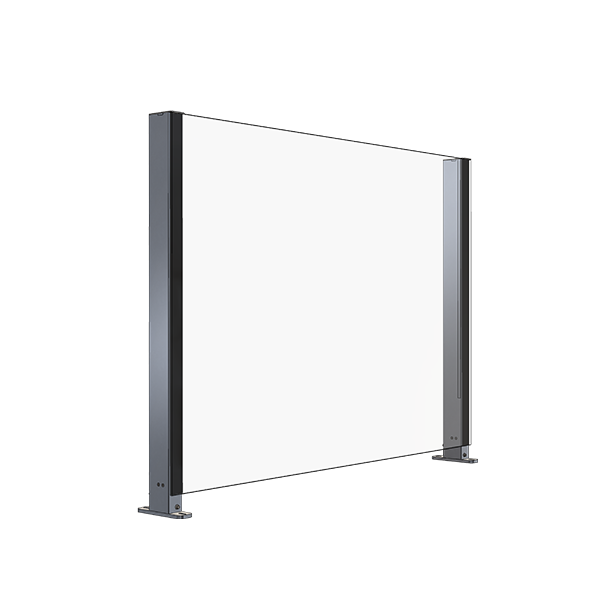 Balustrady szklane z wolnymi krawędziami i osłoną wiatrową, które można łatwo podnosić i opuszczać.